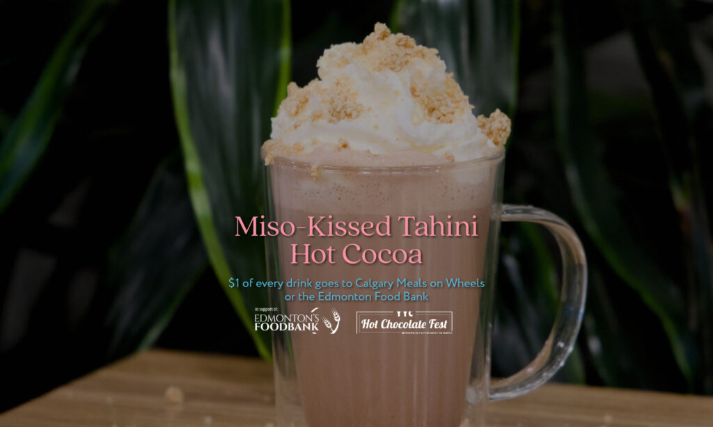 All February long, enjoy our Miso Kissed Tahini Hot Cocoa. Dark chocolate, creamy tahini, pure maple syrup, and a touch of shiro miso come together for a comforting, quietly indulgent sip, finished with whipped cream and crunchy sesame snap. A dairy-free option is available, minus the whipped cream.
